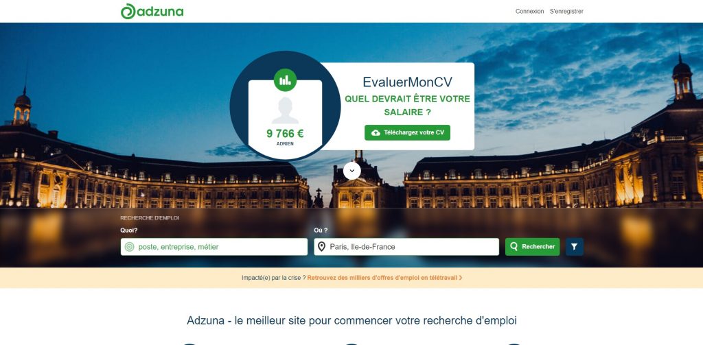 Adzuna est une Start-up d’origine britannique crée en 2010 par Andrew Hunter et Doug Monro, deux anciens d’eBay. Le site français a été lancé un an plus tard en avril 2011. Ce moteur de recherche reférencie plus de 600 000 offres d’emploi répartie sur toute la France.