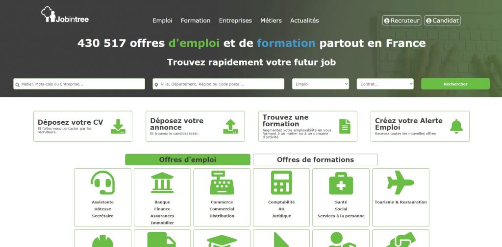 Sur ce méta-moteur, l’objectif est de faciliter la recherche d’emploi pour le candidat issu de n’importe quel métier. Les internautes accèdent à des offres provenant de Grandes Entreprises, mais surtout des PME, PMI, TPE, sociétés d’intérim, et cabinets de recrutements.