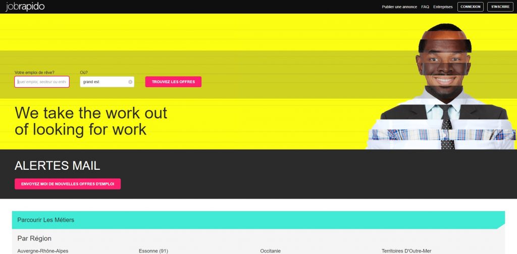Jobrapido est un moteur de recherche d’origine Italienne présent dans plus de 58 pays. Crée en 2006 à Milan, ce site comptabilise plus de 10 millions de visiteurs par jour ! Simple d’usage, Jobrapido permet d’effectuer des recherches par famille de métiers